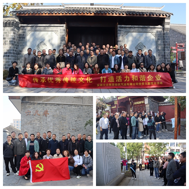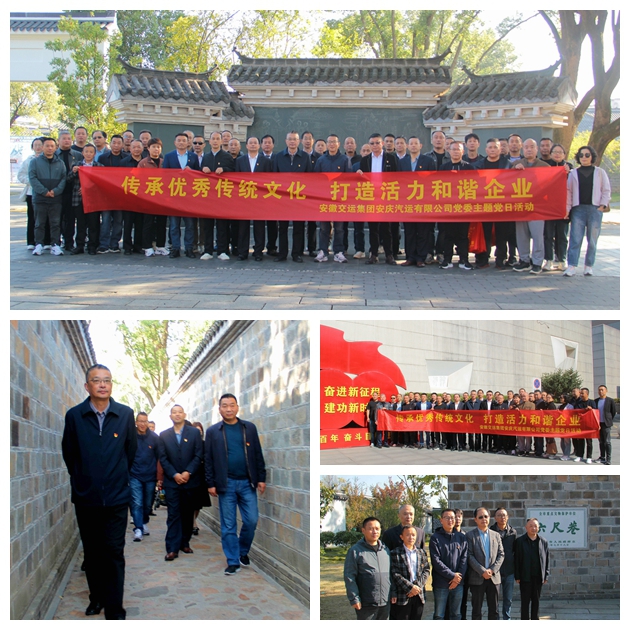 為深入貫徹習(xí)近平總書(shū)記考察安徽時(shí)的重要講話精神,進(jìn)一步弘揚(yáng)中華優(yōu)秀傳統(tǒng)文化,加強(qiáng)精神文明建設(shè),提升黨員干部的崇德尚禮品質(zhì),安慶公司黨委于11月7日至8日,精心策劃并組織了以“傳承文化精髓,打造和諧企業(yè)新篇章”為主題的黨日活動(dòng)。此次活動(dòng)由公司黨委主導(dǎo),桐城分公司黨支部具體承辦,市客運(yùn)分公司黨支部積極參與協(xié)辦,實(shí)現(xiàn)了全司黨員干部的廣泛參與。